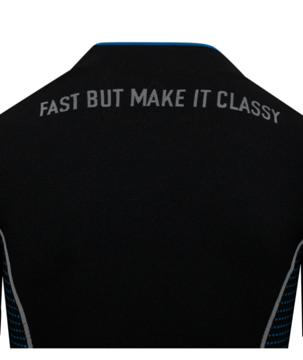 Elevate your activewear with this fitted, high-performance tee, designed for both functionality and style. Made from a premium blend of polyester and elastane, it offers lightweight durability, exceptional stretch, and superior moisture-wicking properties to keep you cool and dry during intense workouts. The seamless construction ensures all-day comfort by reducing friction, making it perfect for the gym, running, yoga, or casual wear. The iconic jacquard Vespa logo and bold DEC graphics in contrasting accents stand out against the sleek black base, adding a touch of sophistication. Finished with the statement “Fast but Make It Classy” on the back, this tee is designed for those who demand both performance and elegance in their active lifestyle.