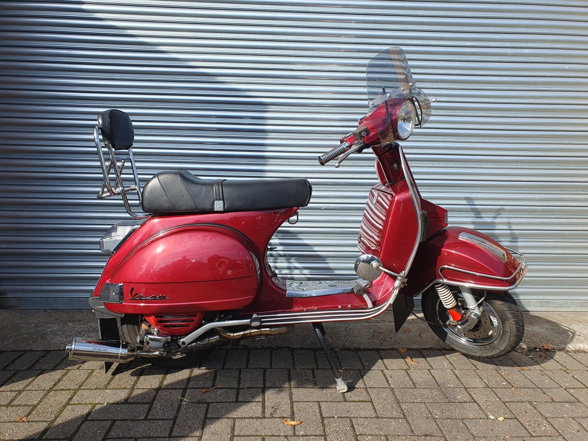The bike has also been fitted with a Vespa Px electric start engine (electric start is fully operational) which had been fitted with a Malossi 166 kit and sterling stainless steel exhaust.